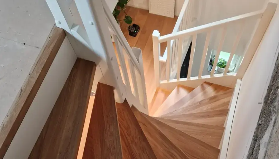 Treppen nach vorgefertigten Schablonen in Formverleimung mit Rundungen nach Wunsch ...