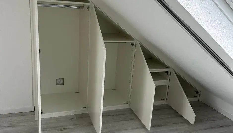 Dieser Einbauschrank verwandelt ungenutzten Raum millimetergenau in ein funktionelles Platzwunder...