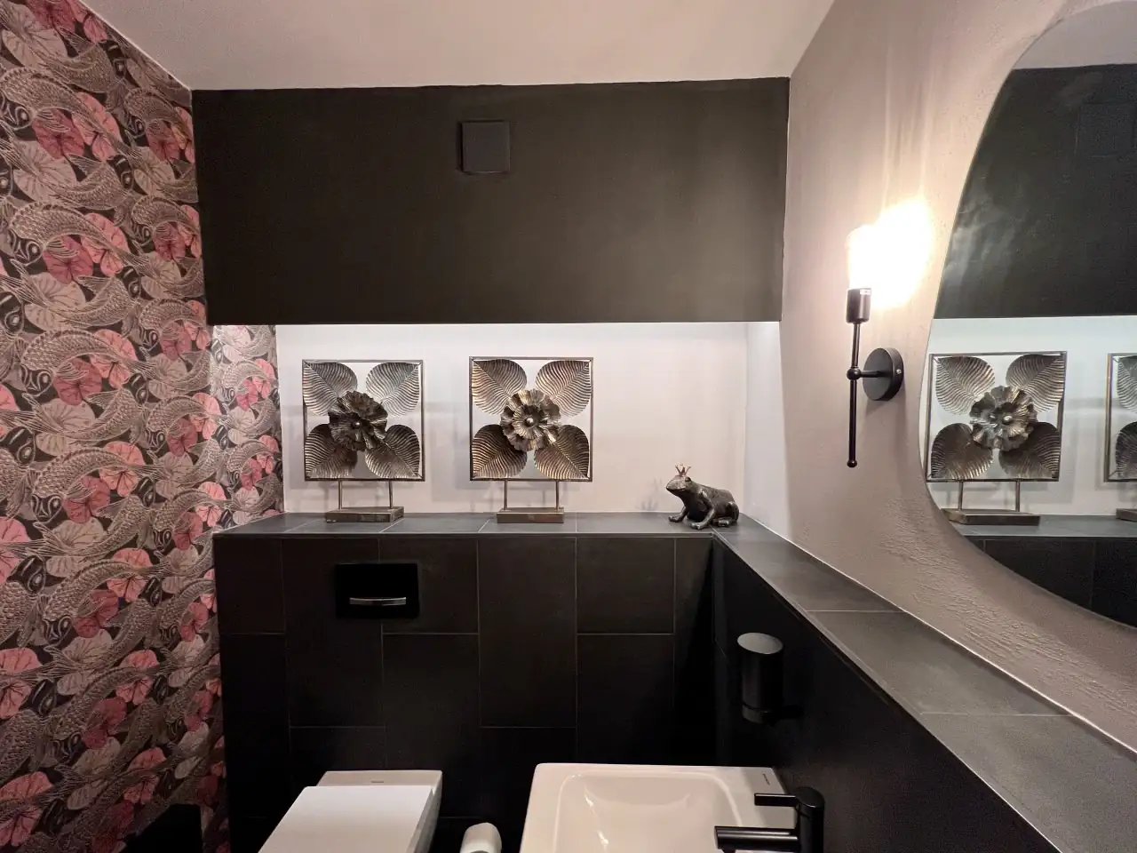 Auch die angrenzenden Sanitärbereiche wurden von uns neu gestaltet. Klare Formen, hochwertige Oberflächen und individuelle Lösungen sorgen dafür, dass selbst die Nebenräume den hochwertigen Stil der Lounge widerspiegeln. Ein durchdachtes Raumkonzept, aus einem Guss – vom ersten Sitzplatz bis zum letzten Detail an der Wand.