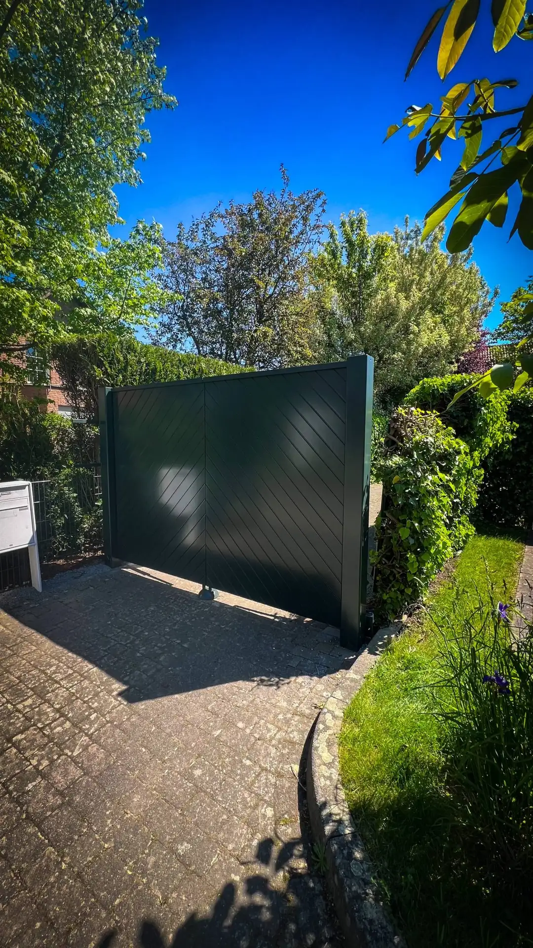 • Perfekt integriert in Mauerwerk, Fassade und Einfahrtssituation.