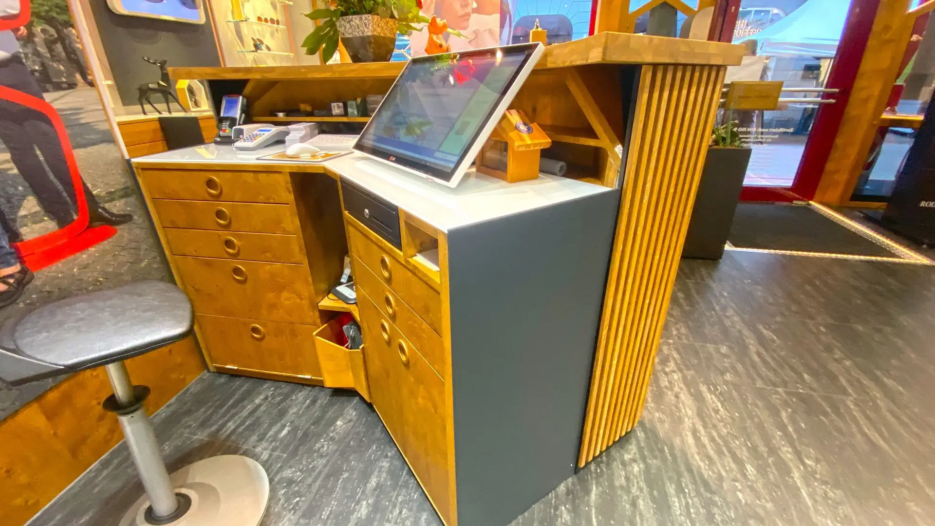 Auch die restliche Inneneinrichtung des Optikstudios auf der Neusser Neustraße stammt aus unseren Werkstätten, welche wir Ihnen hier präsentieren möchten.