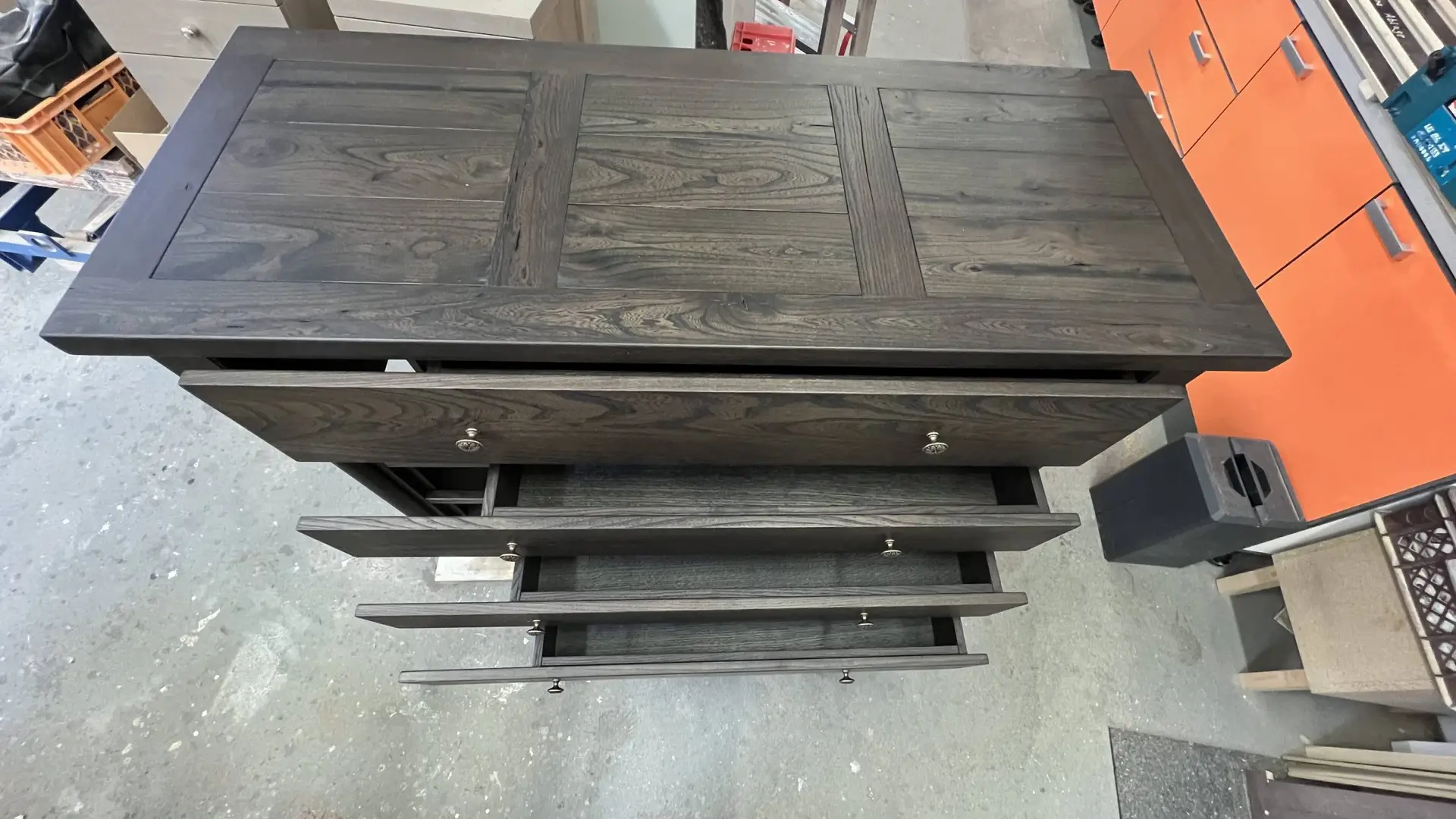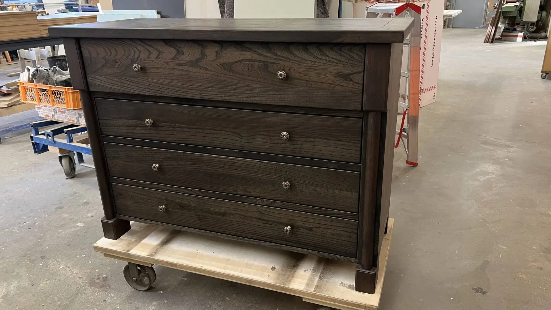 Unsere handgefertigte Kommode aus Rüster (Ulme) vereint klassisches Design mit modernem Nutzen. Sorgfältig von uns aufgearbeitet, strahlt sie in neuem Glanz und bringt den natürlichen Charme des Holzes zur Geltung.