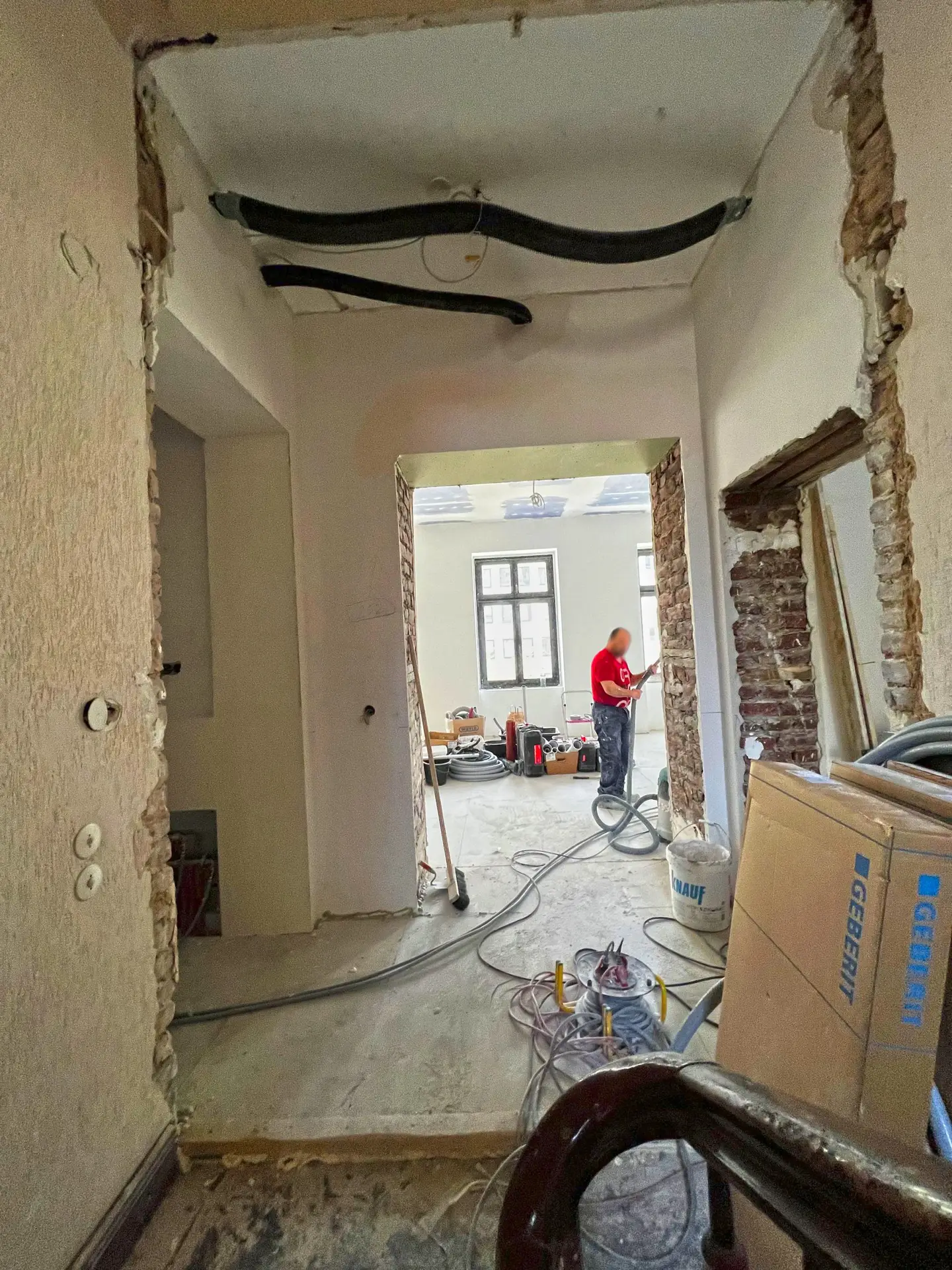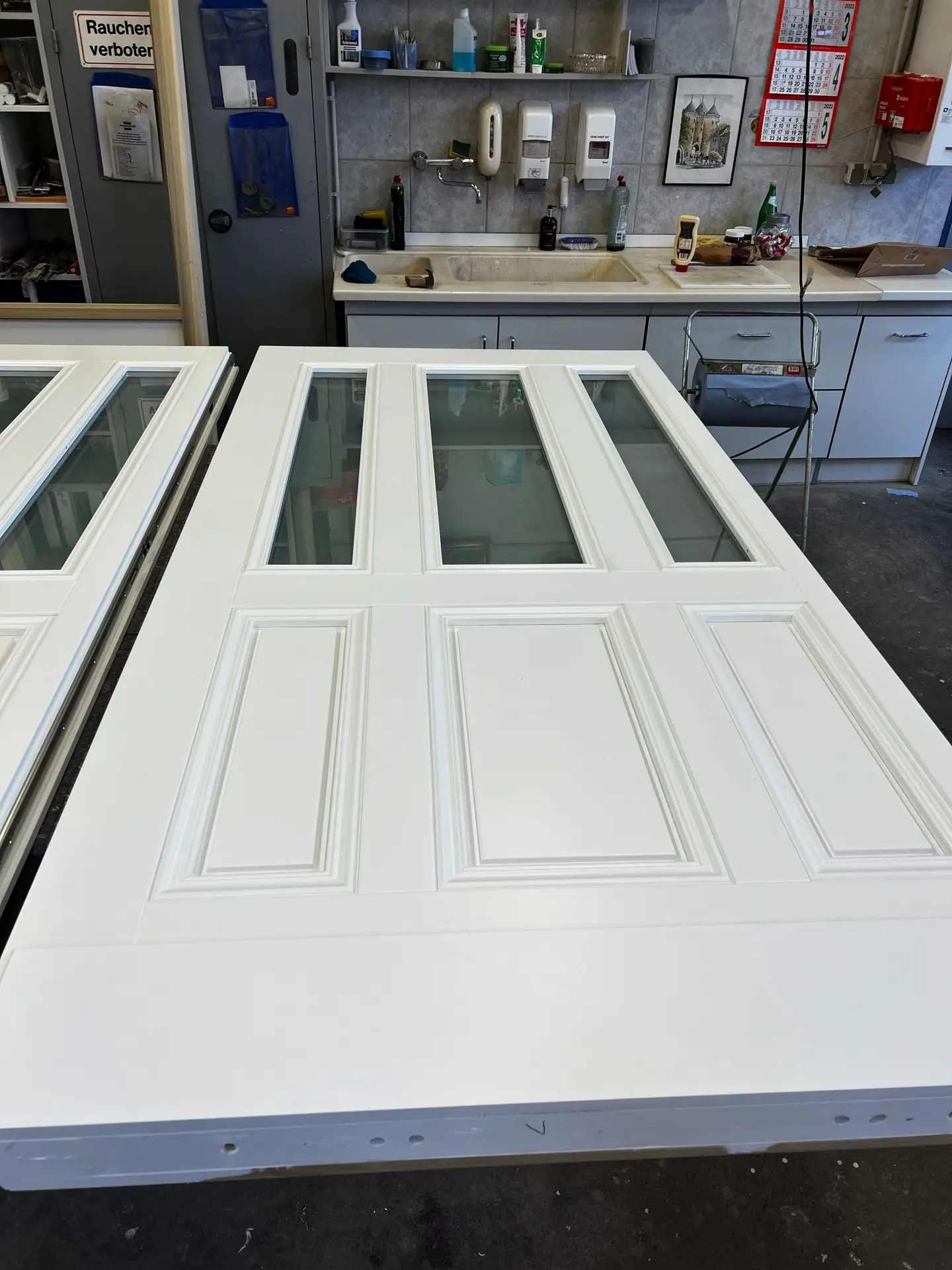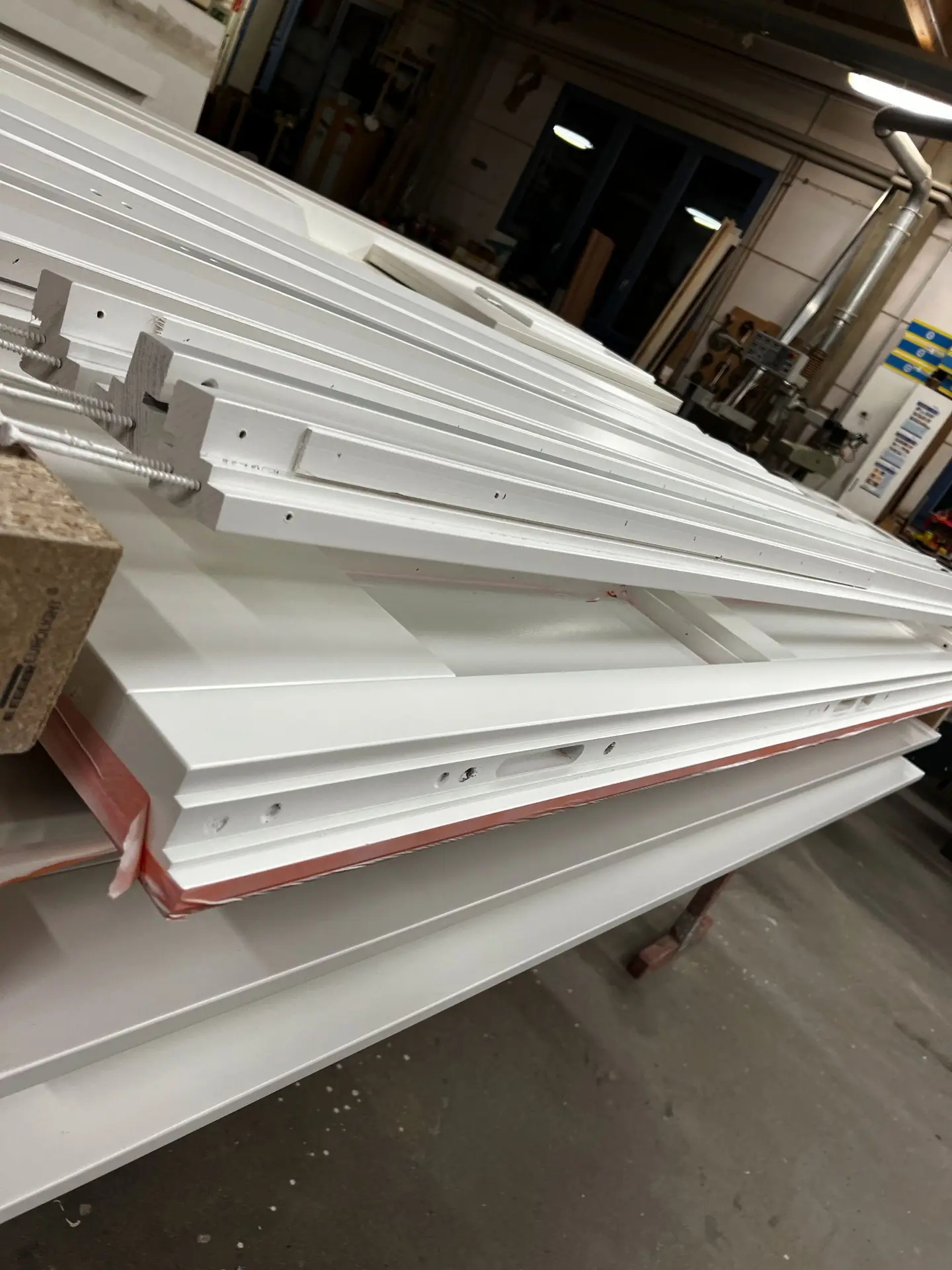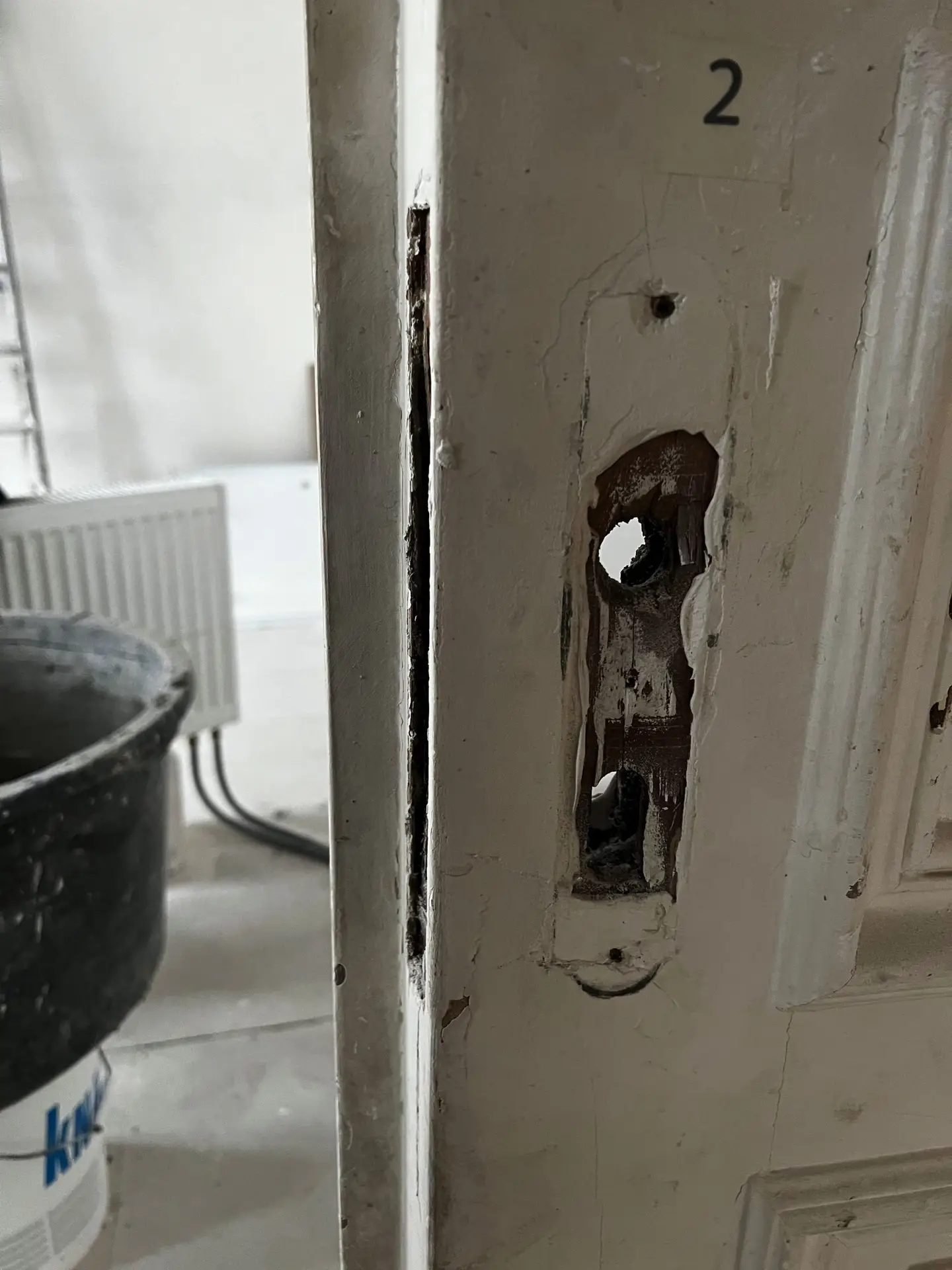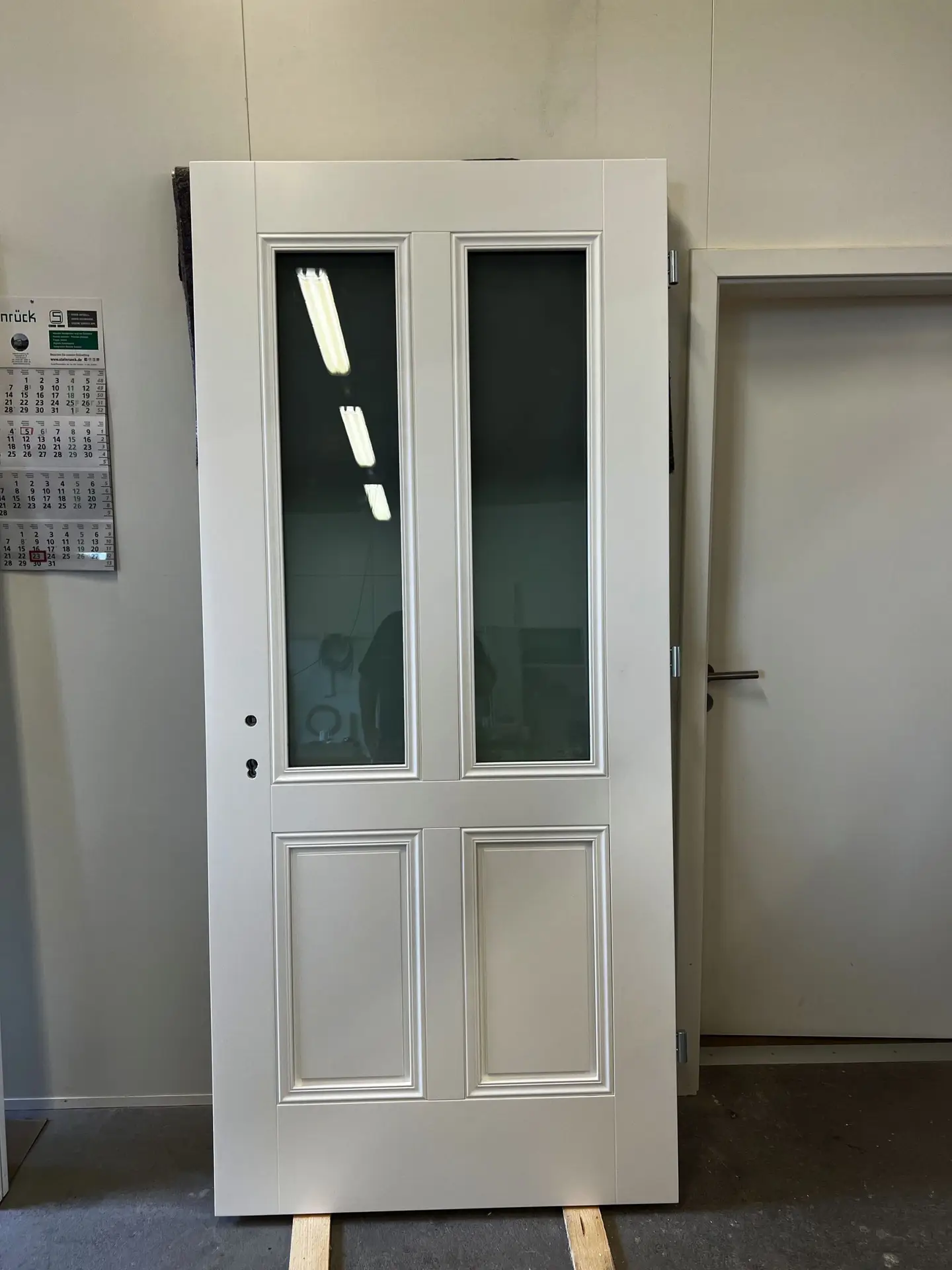 Im Rahmen einer Altbaurenovierung haben wir 11 einflügelige und doppelflügelige Stil-Massivholztürelemente in Rahmenbauweise aus Tulpa massiv Holz, mit den Maßen 750-980×2020-2640mm, mit Füllungen, Aufsatzleisten, Kanelierungen, teilweise satinierten Glasfüllungen incl. Türfutter bzw. Blendrahmen mit Beschlag, Dichtung und Schloß fachgerecht nach Muster und Vorlage angefertigt, geliefert und montiert. Die Oberfläche der Türelemente ist grundiert und lackiert. Die Fertigung erfolgte nach Kundenwunsch, sowie passend zu den vor Ort noch vorhandenen Türelementen.